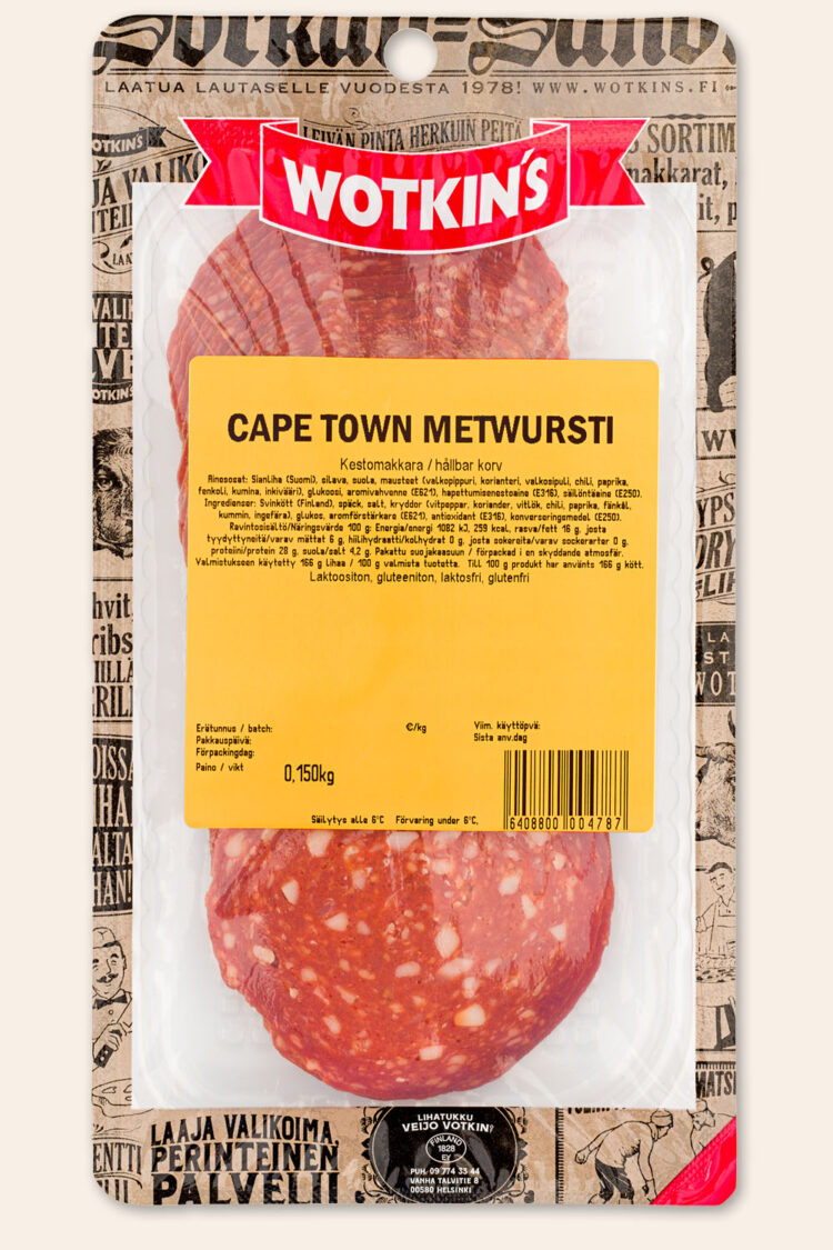 Sianliha, hevosenliha, silava, suola (4,0 %), mausteet (mm. valkopippuri, inkivääri), glukoosi, luontainen aromivalmiste, säilöntäaine (E250).