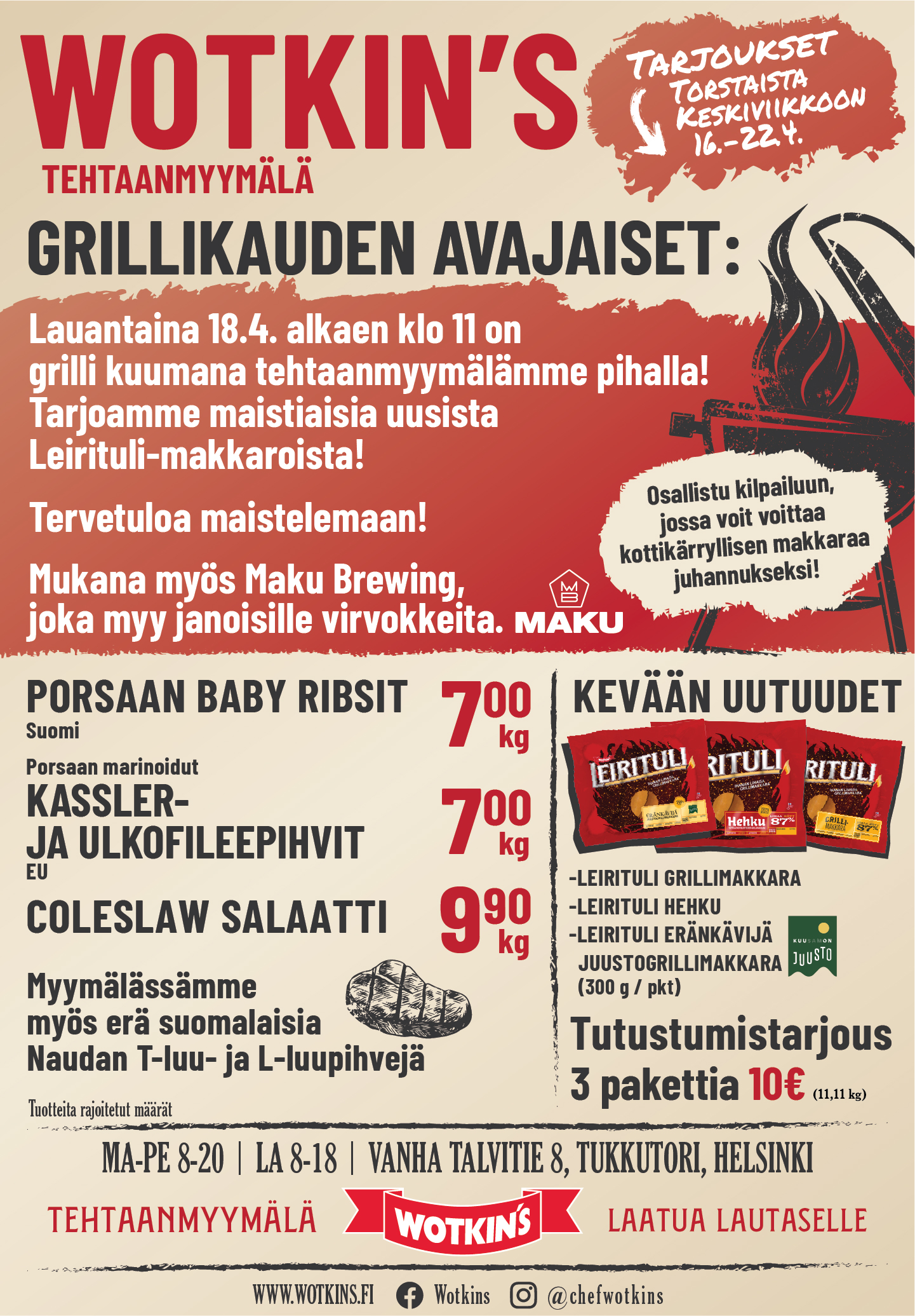 Tukkutorilla vuodesta 2000 toiminut, maaliskuussa 2021 täyden remontin läpikäynyt tehtaanmyymälämme tarjoaa kattavan kokonaisuuden lihaa ja lihajalosteita. Myymälän seinän takana valmistamme makkarat, leikkeleet, kylmäsavutuotteet, paistamme kinkut, teemme valmisruoat ja valmisruokakokonaisuudet. Omassa lihanleikkaamossa leikkaamme luuttomaksi mm. suomalaista nautaa ja lammasta. Moni onkin yllättynyt, että kaikki toiminnot ovat saman katon alla. Tervetuloa Sörkän sydämeen. Täällä sinua palvelee motivoitunut, ammattitaitoinen henkilökuntamme maanantaista lauantaihin.